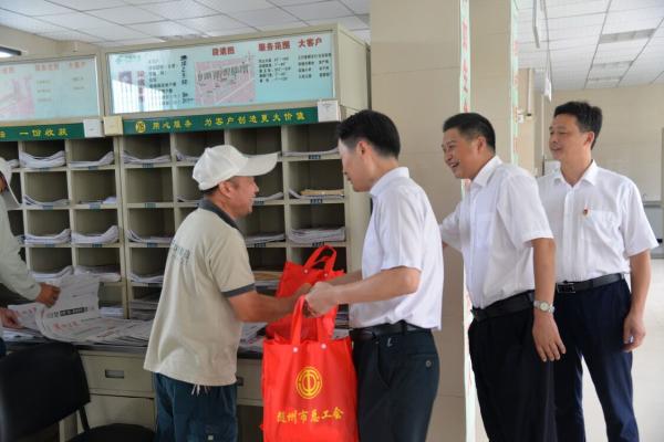 炎炎夏日,驕陽似火。7月27日一大早,隨州市委常委、組織部長、總工會主席甘國棟專程來到隨州郵政分公司,看望慰問在高溫下堅守一線的郵政職工,給他們送來清涼消暑慰問品,代表市委、市總工會向奮戰(zhàn)在高溫一線的廣大郵政職工表示慰問和感謝。市總工會副主席錢玉梅、經(jīng)審委主任徐秀清一同慰問。