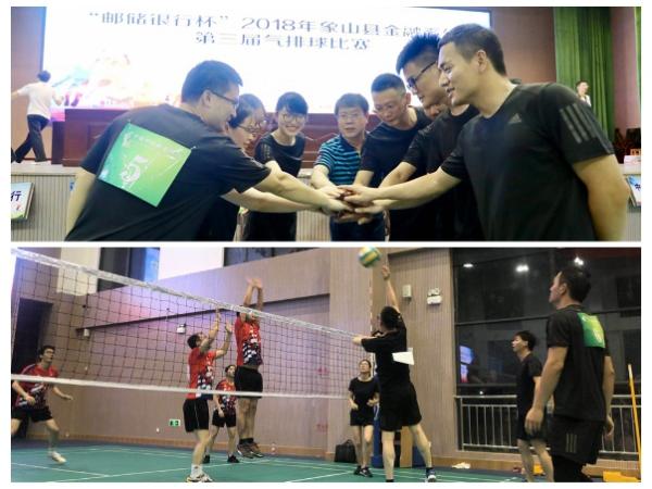 2018年“郵儲銀行杯”象山縣金融系統第三屆氣排球比賽于7月8日落下帷幕。本次賽事由縣金融系統工會聯合會主辦,縣排球運動協會承辦,我行冠名,賽事共歷時兩天。