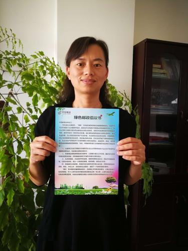 同時,將《綠色郵政倡議書》制作后粘貼在州分公司電梯內顯著位置,加強宣傳的同時,鞏固員工綠色郵政的意識。 各縣分公司收到印制的《綠色倡儀書》后,及時組織網點員工、投遞人員進行學習,在基層干部職工中掀起踐行“綠色郵政”的熱潮,號召全體郵政干部員工從我做起,用實際行動踐行綠色發展理念,將郵政打造成“綠色運營踐行者,綠色生活推動者,綠色生態守護者,綠色品牌塑造者”。(云南郵政工會)