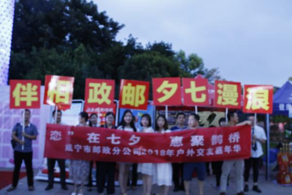 七夕之夜,咸寧市郵政工會組織15名單身青年職工參加由咸安區委宣傳部、老干局、區總工會、共青團咸安區委、區婦聯等聯合主辦的“戀在七夕”大型戶外相親交友活動。