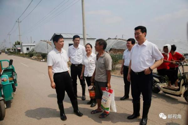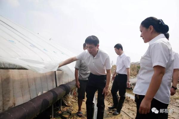 在紀臺鎮,王志奇一行專程前往鎮政府為消防官兵送去慰問品,實地查看李家村郵樂購站點,深入災區走訪慰問大棚受災戶,加入紀臺支局關愛受災客戶微信群。