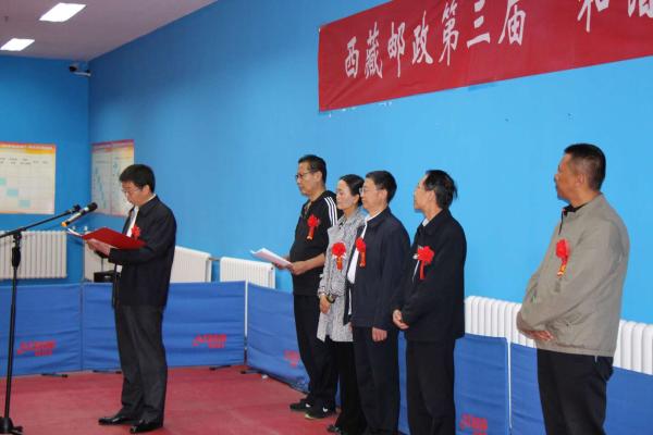 本次比賽,得到了自治區(qū)總工會、區(qū)分公司黨組和自治區(qū)體育局的高度重視。在比賽開幕式,自治區(qū)總工會黨組成員、副主席秦少相出席并講話,對本次活動給予了高度肯定、鼓勵并提出殷切希望;區(qū)分公司黨組成員、區(qū)速遞物流分公司黨委書記、總經(jīng)理袁軍親臨比賽現(xiàn)場并講話,向參加比賽的全體干部職工及參賽隊(duì)員和全體工作人員致以親切的慰問,并與參賽選手親切交流,鼓勵他們認(rèn)真比賽、奮勇拼搏、力爭取得好成績; 自治區(qū)體育局群體處副處長丹增出席并揮拍開球。
