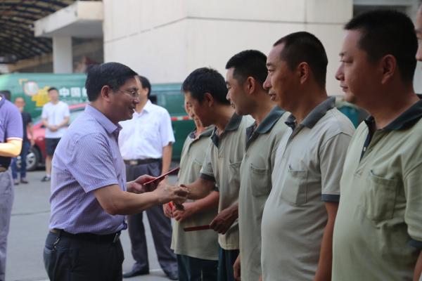 郭從軍首先來(lái)到楊岔路投遞站和伍家攬投部,為正忙碌分揀投遞的一線員工送去慰問金和慰問品,向大家道聲辛苦了。他親切地和大家一一握手,充分肯定和贊揚(yáng)郵政近期冒著高溫酷暑,開展高考錄取通知書投遞工作,展現(xiàn)了國(guó)企的本色和風(fēng)采。