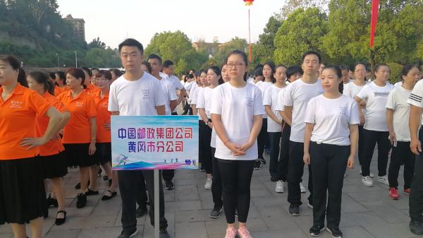 8月8日,黃岡市第十屆“全民健身日”活動暨首屆“舞動精彩 郵情有愛”全民健身廣場舞大賽啟動式在赤壁公園廣場舉行。由90名郵政職工組成的郵政方陣表演了工間操,動作整齊、場面宏大的工間操表演和朝氣蓬勃、精神抖擻的職工精神面貌,贏得了現場觀眾的熱烈掌聲。