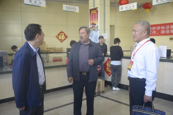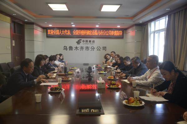 9月14日下午,全國人大代表、全國勞模、江蘇省泰州市泰興郵政局江平路支局長何健忠在區分公司副總經理阿布都許庫爾·買買提的陪同下到烏市郵政分公司參觀指導。