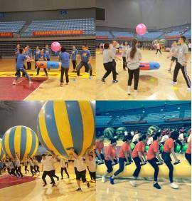 比賽過程充滿趣味性和挑戰性,歡聲笑語將趣味運動會推向一個又一個高潮。第一輪“趣味障礙賽”讓大家迅速進入比賽狀態,四名參賽隊員以接力賽的形式分別完成旋轉、跨欄、跳繩、鉆網四個項目,場上的隊員奮勇爭先,場下的隊友鼓勁吶喊;“旱地龍舟”速度與激情同在,隊員們坐著可愛的“充氣龍舟”器材,一起加速,奔向終點;“動感五環”項目由一名隊員坐在器械內,三位隊員快速推動坐著同伴的道具,各隊你追我趕,不相上下;“指壓板障礙賽”是本次比賽的重頭戲,跨障礙、跳繩、鉆網,掌握節奏大步向前沖;“撕名牌”則是展示員工個人魅力的時刻,將現場氣氛推向了最高點;作為最經典的團體項目,最后的加時賽“拔河”將團隊凝聚力展現的淋漓盡致。