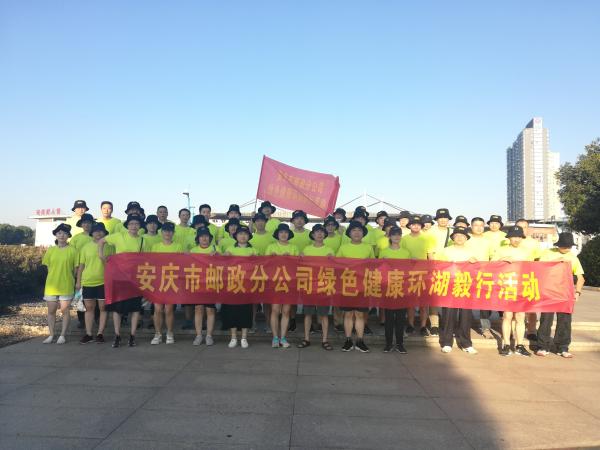 8月29日早上7:00,安慶市郵政工會組織開展了“綠色健康環湖毅行”活動,來自市分公司的近70名員工參加了活動。此次活動是安慶郵政“綠色郵政”主題系列活動之一,大家身著統一的綠色T恤衫,宣傳綠色健康生活理念,展現了安慶郵政員工的綠色文明形象。