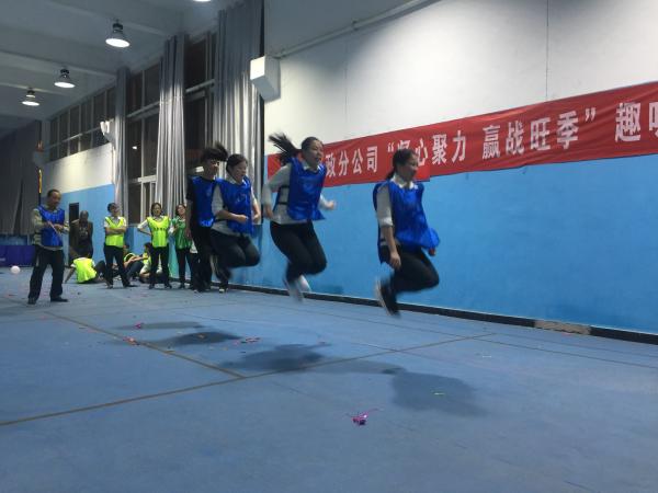 賽前經(jīng)過認真組織,精心策劃,設(shè)置了有一定運動強度,且富于樂趣的運動項目,團體項目有:踩擠大戰(zhàn)(3人)、我是喬丹(4人接力)、袋鼠跳、呼啦圈、跳繩接力賽(3人接力)、集體跳繩(6人)共4個項目的比賽。由4個團體代表隊及50余名職工參加了開幕式。經(jīng)過激烈的角逐,在裁判組統(tǒng)計后得出一等獎一名、二等獎兩名、組織獎一名。宣布了比賽獲獎的團體及個人名單,并舉行了頒獎儀式,為各獲獎團體頒發(fā)了獎品。