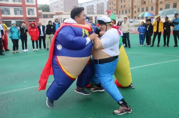 活動現場,職工們情緒高漲,比賽緊張激烈,圓滿完成了瘋狂袋鼠跳、黨務知識問答接力賽、十人綁腿、拔河比賽等四項團體項目,以及摸石頭過河、趕“豬”跑、超級相撲、乒乓運球等四項個人賽。