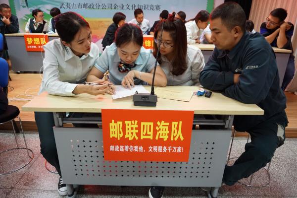 競賽設立4人一組共6個代表隊,采取PK的形式,通過必答題、搶答題和選分題三個環節開展,內容涵蓋黨建、企業文化、業務、服務和安全知識,立足崗位工作,形式多樣有趣。比賽中,各位參賽選手準備充分,答題精彩,比賽場面緊張激烈,比分交替上升,賽出了風格、賽出了風貌,贏得臺下職工們熱烈的掌聲和互動參與,充分展示了武郵人“敢拼愛贏”的新形象,展現了郵政職工扎實的業務功底、良好的綜合素養和飽滿的精神面貌。
