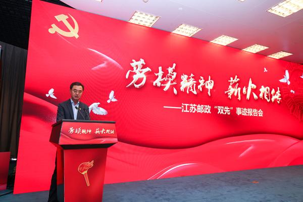 杜福在講話中指出,江蘇郵政的發展歷程,就是一部先進典型不斷涌現、勞模精神不斷弘揚、優秀文化不斷傳承的奮斗史,先后涌現出以如皋“愛心郵路”、洪澤湖“水上郵路”、泰興“預防郵路”為代表的特色郵路群體,立足崗位、愛崗敬業、甘于奉獻的全國勞模何健忠、唐真亞、殷勇等先進個人。郵電分營至今,2人當選全國人大代表,2人當選黨的全國代表大會代表,5人榮獲全國勞動模范,16人榮獲全國郵政系統先進個人。這些勞模、先進、工匠,是全省郵政員工的優秀代表,是實干創新的楷模典范。他們的先進事跡,生動詮釋著愛崗敬業、勇于擔當的主人翁精神,追求卓越、爭創一流的工匠精神,艱苦奮斗、苦干實干的拼搏精神,淡泊名利、甘于奉獻的利他精神,緊密協作、互助互愛的團隊精神。