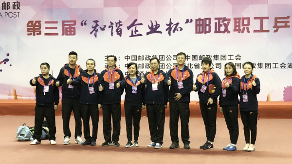 10月23日上午8時整,為深入貫徹黨的十九大報告“廣泛開展全民健身活動,加快推進體育強國建設”的精神,由中國郵政集團公司、中國郵政集團工會聯合主辦的第三屆“和諧企業杯”郵政職工乒乓球比賽在湖北黃石開幕。中國郵政集團公司副總經理、工會主席康寧講話,湖北省郵政分公司總經理任永信致辭、中國郵政集團工會常務副主席李玉峰主持開幕式。全國郵政包括中國香港、中國澳門代表隊在內,共有38支代表隊參賽。