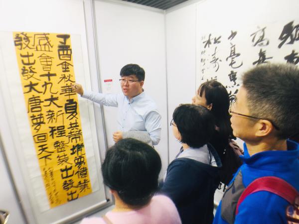 在每一副有代表性的書法作品面前,王龍老師都為大家詳細(xì)講解了作品字體發(fā)展的淵源和作者運筆書寫、布局謀篇的精妙之處,告訴大家書法作品要注意字與字之間起承轉(zhuǎn)合和濃淡干濕的變化,以及如何在書法作品上鈐印蓋章等等書法專業(yè)知識,讓大家深受啟發(fā)。