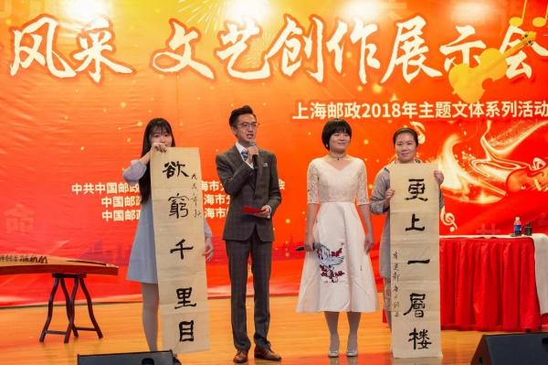 2018年10月16日,在上海郵政“黨旗下的風采,綠衣人的舞臺”文藝創作展示會中,經過一天的激烈角逐,由市寄遞事業部選送的節目《續寫郵政嶄新篇章》榮獲語言融合類節目的第一名,這是九年來同類型比賽中榮獲將的最高獎項。