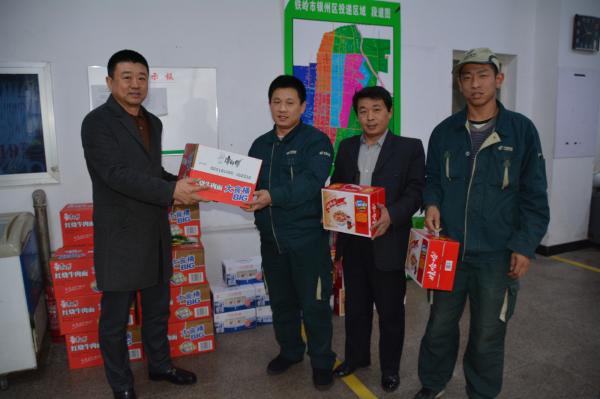 11月8日下午,市分公司工會主席田野、工會副主席劉井華冒著小雨先后走訪了寄遞事業部所屬的網路運營中心、城區投遞班、快包處理中心現場,慰問了奮戰在一線的職工,將省、市工會精心準備的牛奶、方便面、八寶粥、香腸等慰問品送到他們手中。田野主席每到一處,對職工們默默貢獻、堅守崗位、不辭辛苦的工作態度表示感謝。同時,一線職工們紛紛表示,不辜負領導的關切,確保完成旺季生產期間郵件運輸、包件投遞任務,為鐵嶺郵政寄遞翼事業發展做貢獻 。