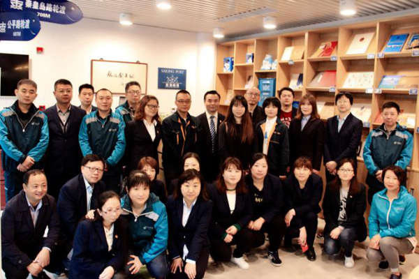 活動第一站,大家來到了“全國首家航海主題郵局”。走進大廳,墻面上的照片吸引了大家的目光,一張張照片訴說著航海郵局兩年多來的成長歷程,通過市場部的精心講解,大家對航海郵局的成立背景、圍繞航運文化主題開發的郵政特色產品、服務中國航海日的各項活動都有了更直觀的感受和更深入的了解。