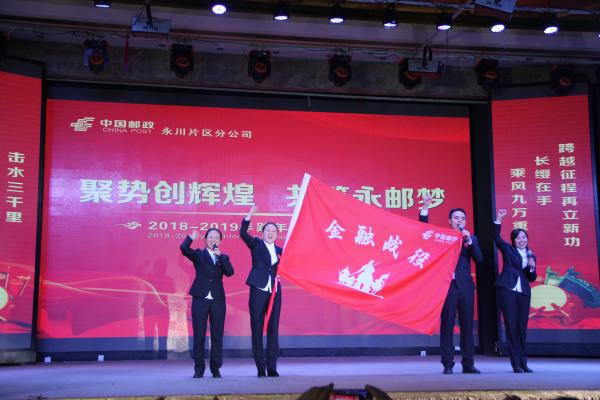 2018年10月26日,重慶永川片區分公司召開2018-2019年度跨年戰役啟動會,永川、榮昌、大足、璧山分公司員工各展才藝,為大家獻上了一場視聽的饕餮盛宴。新奇的螢光舞、熱烈的籃球火、杰克遜經典舞蹈,都掀起了現場一陣陣的歡呼聲。榮昌郵政的金錢板表演《雁破云天》讓大家對其美多吉肅然起敬,穿越劇《郵政攻略》通過經典電影橋段帶你到各個時代領略不同的郵政業務,舞蹈《天藍藍》,藏族漢子其美多吉和姑娘們翩翩起舞,帶你感受天籟,體驗郵路艱辛......大家在放松的同時都莊嚴起誓、堅定信念:我們必將以飽滿的熱情、昂揚的斗志打響跨戰!