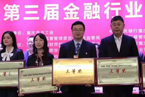 2018年11月7日一9日,中國郵政儲蓄銀行重慶分行組隊參加了由重慶市總工會、中國人民銀行重慶營業管理部、中國證券監督管理委員會重慶監管局、中國保險監督管理委員會重慶監管局聯合主辦,重慶市金融財貿輕紡工會、中國人民銀行重慶營業管理部工會承辦的“中國夢 勞動美”第三屆全市金融行業職工技能大賽銀行業類比賽。經過三天激烈的比拼,重慶分行獲得團體三等獎,假鈔識別二等獎,手工點鈔、字符錄入兩個單項三等獎的好成績。