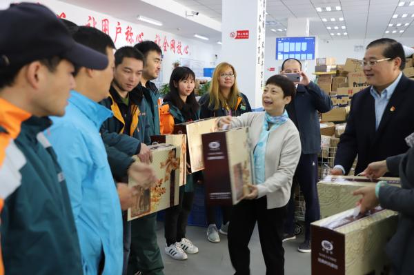 11月20日上午,上海郵政工會(huì)副主席秦國(guó)敏和工會(huì)陶曄老師代表市分公司黨政工團(tuán)來(lái)到上海郵政閔行區(qū)分公司莘莊郵政支局和寄遞事業(yè)部莘莊營(yíng)業(yè)部,為在雙十一期間奮戰(zhàn)在一線的投遞員們送上問(wèn)候。感謝他們?cè)陔p十一期間加班加點(diǎn)的投送郵件,同時(shí)也耐心的囑咐投遞員們要注意自身安全,特別是最近雨水較多,行車都要小心,同時(shí)為投遞員們送上了慰問(wèn)品。