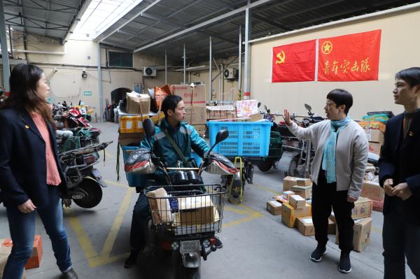 秦主席一行先來(lái)到了莘莊郵政支局,向支局負(fù)責(zé)人了解了支局在雙十一期間的投送數(shù)量和質(zhì)量以及投遞員加班加點(diǎn)的情況,期間一位因投送郵件時(shí)不慎摔破頭的員工經(jīng)過(guò),秦主席細(xì)心的發(fā)現(xiàn)了,并主動(dòng)詢問(wèn)員工情況,對(duì)員工帶傷工作的精神表示了肯定,同時(shí)也關(guān)切地囑咐員工一定要注意出行安全,如果有什么事一定要及時(shí)與支局或工會(huì)反饋。