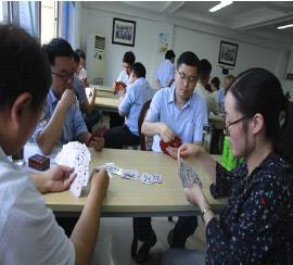 滁州市分行行領導和員工同臺競技,賽場上的氣氛十分活躍。比賽采取積分制,經過支行工會及分行部門工會層層選拔的20 組選手,抽簽分五個小組進行比賽。經過二輪淘汰賽,勝出的五對選手進入決賽。選手們密切配合,精確計算、沉著應戰,對陣雙方比牌技、比智慧。最終定遠縣支行朱強國、楊冬榮獲一等獎;市分行楊志強行長、胡冠利總經理、葛兵、張寶軍榮獲二等獎;定遠縣支行孫彪、徐海峰,市分行彭濤、夏保冬榮獲三等獎。此次活動,增進了員工之間的溝通與交流,展現了員工頑強拼搏的斗志和昂揚向上的精神風貌。