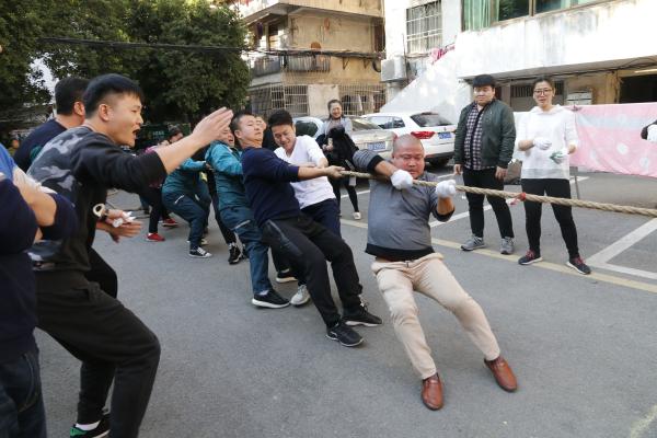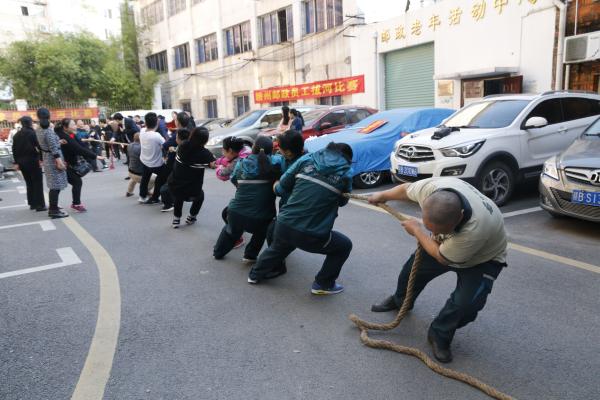 比賽現(xiàn)場(chǎng),參賽隊(duì)員們緊握繩索,身子稍往后傾,拉開“弓字步”,個(gè)個(gè)凝神聚氣,一觸即發(fā),只聽裁判一聲哨響,隊(duì)員們立刻卯足勁兒往后拔,有的漲紅了臉,有的咬緊了牙關(guān),人人都使出了全身的力氣;啦啦隊(duì)員們“一二加油!一二加油!……”地拍打著手勢(shì),吶喊著為場(chǎng)上隊(duì)員們加油鼓勁,氣勢(shì)絲毫不遜于參賽隊(duì)員。現(xiàn)場(chǎng)吶喊聲、加油聲、歡笑聲此起彼伏,匯聚成美妙的交響樂(lè)曲,激發(fā)著每一位郵政員工積極向上的生命激情。
