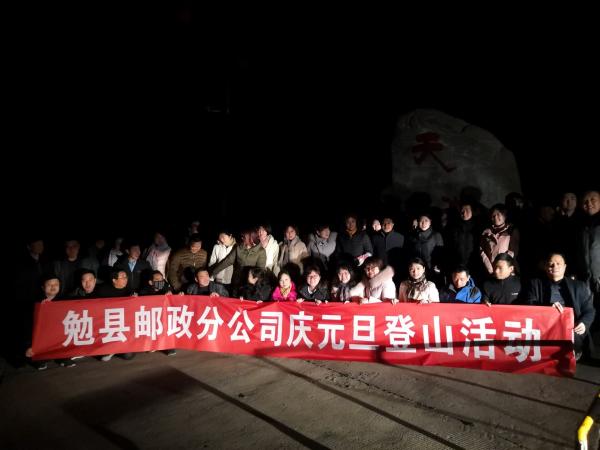 為贏戰旺季,鼓舞士氣,增強員工的團隊意識,勉縣郵政分公司于12月18日清晨舉行了“慶元旦”職工登山活動,縣分公司馮莉總經理親自帶隊。早5點40分,50多名職工由天池出發,經過近一個小時的攀爬,所有人員全部到達終點鷹嘴崖。此次活動在業務旺季舉行,有效的緩解了職工的緊張情緒,更為接下來更好的投入到工作中增添了斗志。