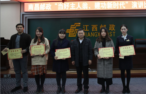 為深入貫徹學習習近平總書記重要講話精神和中國工會十七大精神,在全市掀起學習熱潮,推進南郵“品質發展”,展現南郵職工的綜合素質和人文精神,12月18日下午,南昌市郵政工會舉辦了一場以“當好主人翁、建功新時代”為主題的演講比賽。本次比賽根據選手的演講內容、儀容儀表、演講技巧、觀眾反應等方面進行了綜合評分,共評出一等獎1名、二等獎3名、三等獎5名。