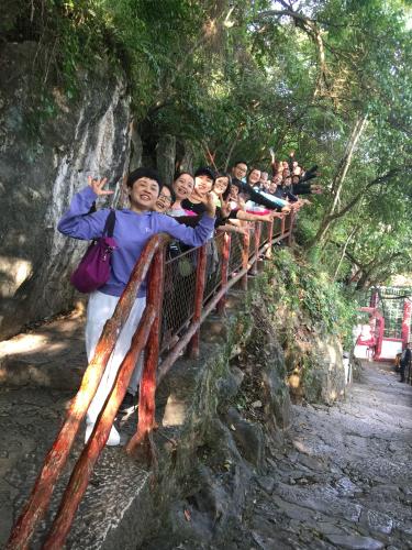 參加活動(dòng)的干部職工早早在指定地點(diǎn)集合,興奮地合影留念后,迫不及待朝著目的地——西華山三元洞頂峰攀登。此時(shí)的西華山身披朝霞,涼風(fēng)習(xí)習(xí),空氣清新,風(fēng)光無限。山下,古木參天,曲徑通幽;通往山上的石徑曲折而險(xiǎn)峻,樓臺(tái)亭閣懸掛在陡峭的山崖上,沿途茂密的樹林、纏繞的古藤條,石縫中頑強(qiáng)生長的花草、以及透過斑駁樹葉流動(dòng)的晨曦光影,吸引著大家駐足觀望,面對(duì)撲面而來自然美景,一路盡情享受這天然氧吧和大自然的滋養(yǎng)。一路觀景、拉家常、談養(yǎng)生,歡聲笑語不斷,不時(shí)舉起手機(jī)拍照留影,發(fā)朋友圈,其樂融融。