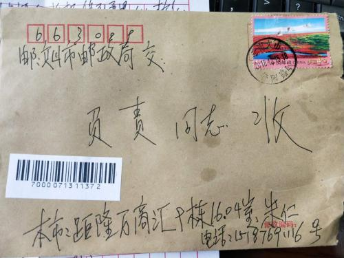近日,文山州分公司營業(yè)局收到一封來自文山市炬龍萬商匯一位78歲名叫朱仁的老同志寫來的表揚信,信封背面寫著“多年來的服務(wù),非常感動”,簡短的幾個字表達(dá)了老人對郵政投遞員的感謝和敬意。