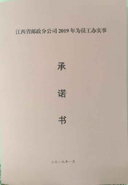 1月23日上午,在省分公司第十三次工作會暨第三屆二次職工代表大會上,總經理代表承諾單位省分公司、主席代表監督單位省郵政工會,分別在《江西省郵政分公司2019年為員工辦實事承諾書》和《中國郵政集團公司江西省分公司工資集體協商專項協議》上簽字。