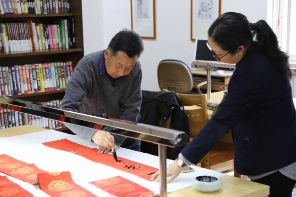 過(guò)春節(jié)貼春聯(lián),是中國(guó)的傳統(tǒng)習(xí)俗,在增添喜慶氣氛的同時(shí)也寓示著平安吉祥。1月30日,省郵政工會(huì)在西寧市分公司職工書(shū)屋舉辦“翰墨飄香迎新春 攜手同心謀發(fā)展”下基層送春聯(lián)活動(dòng)。活動(dòng)組織了企業(yè)書(shū)法愛(ài)好者為職工現(xiàn)場(chǎng)書(shū)寫(xiě)春聯(lián),將濃濃的新春祝福送到職工身邊。活動(dòng)現(xiàn)場(chǎng),人頭攢動(dòng)、掌聲陣陣。書(shū)法愛(ài)好者們興致勃勃、揮毫潑墨,或秀麗頎長(zhǎng)、或方圓兼?zhèn)洌貌煌娘L(fēng)格書(shū)寫(xiě)著對(duì)新時(shí)代,新生活的美好愿景。一幅幅墨寶飄香的春聯(lián),表達(dá)了大家對(duì)新年的美好憧憬;一句句吉祥喜慶話語(yǔ),寄托著對(duì)西寧郵政新一年的殷殷期盼!