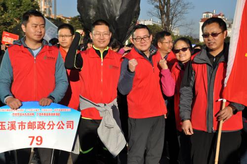 全體郵政職工身著“中國郵政”的紅色馬甲,旗手高舉隊旗和“玉溪郵政祝全市人民新春快樂”、“情系萬家 信達天下”的橫幅,浩浩蕩蕩走在人群中,顯得格外醒目。在全程6公里的行程中,郵政的團隊始終朝氣蓬勃、精神抖擻,順利完成了預定行程。活力十足的隊伍,矯健的步伐,展示了玉溪郵政職工健康、快樂、積極向上的精神面貌,踐行了低碳環保出行的健康文明生活方式,提高大家主動參與健身的意識,在運動中感受健康,盡享幸福快樂。(云南郵政工會)