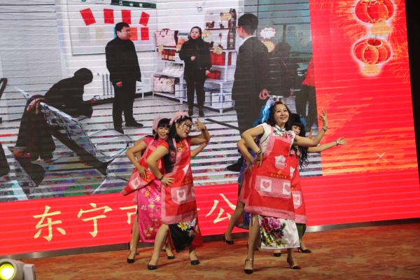 金融業(yè)務(wù)部為使節(jié)目達(dá)到預(yù)期效果,在日常工作量大,演出時(shí)間緊的情況下,幾次更改節(jié)目內(nèi)容,最終確定以舞臺(tái)情景劇的形式反映“開門紅”期間一線職工“擼起袖子加油干”的場景。為使開場舞“開門紅”充分體現(xiàn)區(qū)分公司一線職工的干勁和熱情,市內(nèi)四個(gè)區(qū)分公司分別抽調(diào)人員,利用晚上時(shí)間組織排練。雖然春節(jié)期間沒有休息,但參與排練的職工卻很是開心,充分激發(fā)了他們的內(nèi)心熱情。市分公司機(jī)關(guān)中層干部為使“海草舞”達(dá)到柔美、夸張搞笑的效果,不惜犧牲個(gè)人時(shí)間,一遍遍對(duì)著鏡子進(jìn)行練習(xí),有些人還回家讓家人幫著糾正動(dòng)作。市分公司機(jī)關(guān)的大合唱,最初排練人數(shù)達(dá)到了40多人,幾乎全部上場,后期由于晚會(huì)場地原因進(jìn)行了減員,演出當(dāng)天,看著臺(tái)上領(lǐng)導(dǎo)班子與職工共同演出,很多人還因?yàn)闆]有上場感到遺憾。這一幕幕無比體現(xiàn)出了干部職工為這臺(tái)晚會(huì)所付出的辛勤和汗水,體現(xiàn)出了企業(yè)的凝聚力和向心力。