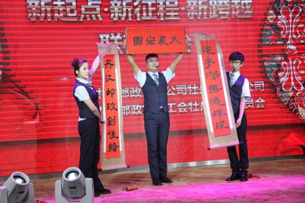 為進(jìn)一步激發(fā)企業(yè)的內(nèi)生動(dòng)力,喚醒企業(yè)的內(nèi)部活力,使企業(yè)在新時(shí)期展現(xiàn)出勃勃生機(jī)。牡丹江市郵政分公司工會(huì)借助一屆一次職工代表大會(huì)召開契機(jī),精心組織籌劃,于2月16日下午職代會(huì)召開后,舉辦了“新起點(diǎn),新征程,新跨越”2019年聯(lián)歡晚會(huì)暨“開門紅”頒獎(jiǎng)晚會(huì)。市分公司領(lǐng)導(dǎo)班子、全體中層干部、區(qū)縣分公司領(lǐng)導(dǎo)班子及一屆一次職代會(huì)先優(yōu)模代表近200人參加了晚會(huì)。市分公司黨委書記、總經(jīng)理高廣忠在晚會(huì)中致辭,鼓勵(lì)大家在新的一年里,同心協(xié)力,共同攜手,再創(chuàng)輝煌。