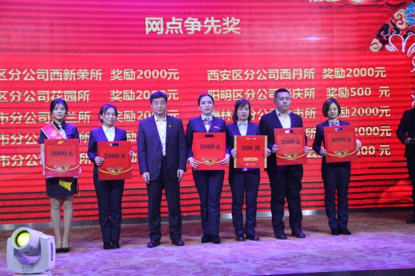 晚會(huì)還通過現(xiàn)場表彰的形式,對(duì)獲得金豬報(bào)春保險(xiǎn)開門紅“達(dá)標(biāo)貢獻(xiàn)獎(jiǎng)”、“網(wǎng)點(diǎn)爭先獎(jiǎng)”、網(wǎng)點(diǎn)增額“貢獻(xiàn)獎(jiǎng)”;寄遞業(yè)務(wù)“平臺(tái)達(dá)標(biāo)獎(jiǎng)”、“平臺(tái)月度PK優(yōu)勝獎(jiǎng)”的區(qū)縣分公司進(jìn)行了頒獎(jiǎng)。更加激勵(lì)了干部職工干事創(chuàng)業(yè)的熱情。
