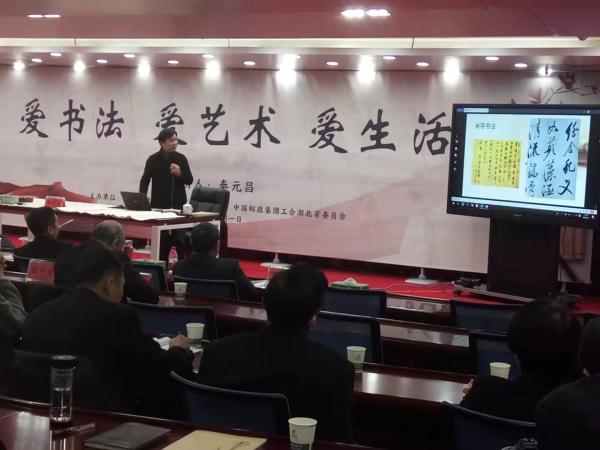 為落實全省郵政工作會議精神,傳承和弘揚中華傳統文化,提高機關干部文化氣質和藝術修養,3月1日,省分公司邀請書法名家秦元昌作客湖北郵政“文化大講堂”作書法講座。省分公司領導,機關全體管理人員,直屬單位四級副以上人員及書法愛好者聽取了講座。省分公司副總經理、工會主席魯先彪主持活動并講話。