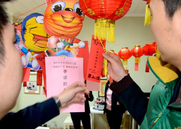 2月18日,北京郵政朝陽區(qū)分公司工會開展了迎元宵趣味猜燈謎活動,活動吸引了眾多職工的積極參與。為了增強(qiáng)元宵佳節(jié)的喜慶氣氛,增進(jìn)郵政員工的感情溝通, 此次迎元宵趣味猜燈謎活動,工會精心收集了100條燈謎,內(nèi)容涵蓋文化、歷史、地理、藝術(shù)、日常生活以及黨建知識、工會知識、郵政工作等內(nèi)容,除了字謎外,還有成語謎、地名謎、人物謎、醫(yī)藥謎等,內(nèi)容豐富,既具娛樂性,又具知識性。 活動開始后,大家踴躍猜謎,認(rèn)真琢磨,你一言、我一語,互相提示和討論,活動現(xiàn)場歡聲笑語不斷。活動結(jié)束后,大家高興地說著參與活動的感受“非常喜歡工會搞的這個活動,我已經(jīng)猜對好幾個燈謎了,多年不用的腦筋‘復(fù)活’了,感受到了濃重的節(jié)日氛圍,希望企業(yè)多搞些文體活動。” 迎元宵趣味猜燈謎活動為郵政員工營造了溫馨、歡樂、祥和的節(jié)日氛圍,受到大家的一致好評。活動激發(fā)了大家參加工會活動的積極性,為凝聚力量,豐富郵政員工業(yè)余文化生活起到了積極的推動作用。(北京郵政工會)