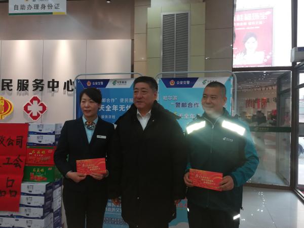 春節(jié)將至,歲寒情深。值此新春佳節(jié)來臨之際,黑龍江省分公司劉斌總經(jīng)理、辦公室趙亮主任、省郵政工會徐涵副主席一行深入基層,來到在哈市南崗區(qū)分公司進行春節(jié)慰問,為廣大職工提前送上節(jié)日的祝福,讓他們在新春之際切身體會到郵政這個大家庭的溫暖與關(guān)懷。