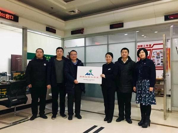 圖為省郵政工會(huì)向船營(yíng)支局長(zhǎng)梁春慧授予“勞模創(chuàng)新工作室”牌匾