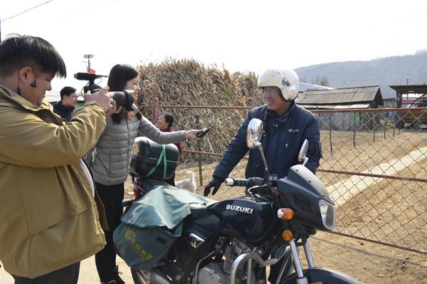 圖為中央電視臺記者跟班采訪鄉郵員金仁哲