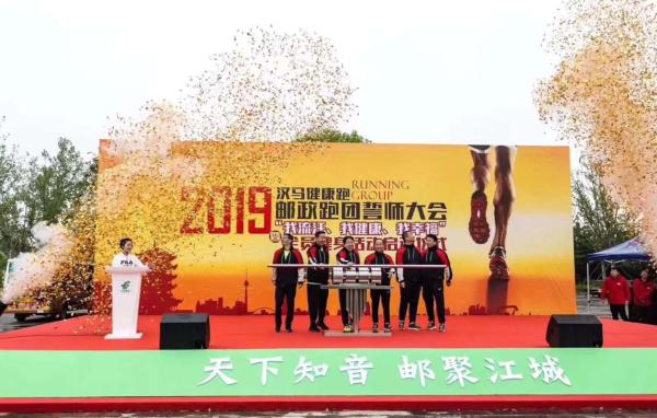 4月10日,2019漢馬健康跑郵政跑團誓師大會暨“我流汗 我健康 我幸福”全員健身活動啟動儀式在園博園北廣場舉行,標志著2019年全省“全員流汗季”活動全面啟動。