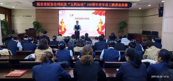 為紀念“五四運動”100周年,弘揚五四精神,傳播青春正能量,5月5日,延吉市區分公司紀念“五四運動”100周年青年員工演講總決賽拉開帷幕,來自不同網點的10名選手在初賽的28名選手中脫穎而出,參加了最終的總決賽。