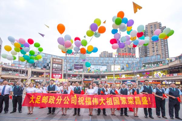 5月9日晚7時許,MK廣場熱鬧非凡,重慶市大足分公司60余名青年員工齊集于此,開展足郵快閃活動,足郵青年深情唱響《我和我的祖國》、《情系萬家》。載歌載舞,獻禮新中國成立70周年;小男孩兒小女孩寄送明信片,自行車穿梭于大街小巷,投遞員將信件送到用戶手中等情景設計穿插于活動當中,將“一封信一顆心”的濃郁情懷及郵政企業優質的服務形象地展現在公眾視野當中。大足日報、大足電視臺相繼對此次活動進行報道。