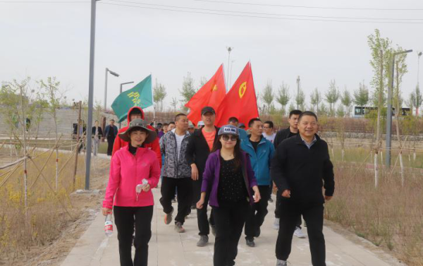 為確保此次徒步活動順利開展,市分公司調配2輛后勤車,并準備了應急藥品和時令水果、面包等補給。徒步隊伍從市分公司家屬院出發,沿迎賓路、黃河路、西藏路、柴達木路、市圖書館,最后到達目的地濕地公園南門,全程大約9公里。一路上春和景明,艷陽高照,綠樹掩映,徒步其中令人心曠神怡。飄揚的旗幟和員工們洋溢的笑臉組成了一道美麗的風景線。