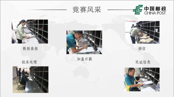 比賽現場,大家紛紛使出看家本領,全情投入,以高度的參與感和使命感來面對此次活動。此次比武內容涵蓋:加蓋日戳、數報套報、排信、批條處理和名址信息采集五項,大家都各顯身手,表現不俗。