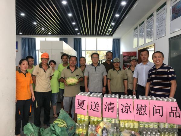 在慰問的過程中,慰問小組每到一處,都與員工親切交談,感謝他們?cè)诳釤崽鞖庀氯匀粓?jiān)守崗位,恪盡職守。深切關(guān)注員工的身體狀況,叮囑各崗位做好防暑降溫工作,注意身體健康。與此同時(shí),領(lǐng)導(dǎo)們?yōu)橐痪€的員工送上清涼飲料,通過這樣的方式,為堅(jiān)守一線的員工送去關(guān)懷,也帶來了一份清涼。