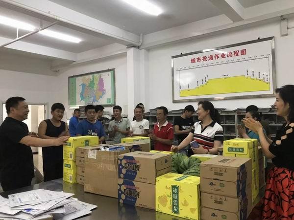 入伏以來,德惠市持續出現高溫悶熱天氣,恰逢高考錄取通知書投遞高峰。為確保暑期生產運營順暢,一線職工能夠平安度夏,近日,德惠市分公司工會領導會同行政領導來到寄遞事業部作業現場,為從事內部生產與外勤作業的員工送去了飲料、礦泉水、毛巾、洗漱等用品,叮囑大家要做好高溫氣候下的自我防護,避免中暑,合理安排投遞時間,確保身心健康。廣大員工對公司領導的關懷表示感謝,紛紛表示會合理安排攬投時間,保證郵件處理時限,以實際行動踐行“人民郵政為人民”的服務宗旨。(吉林郵政工會)