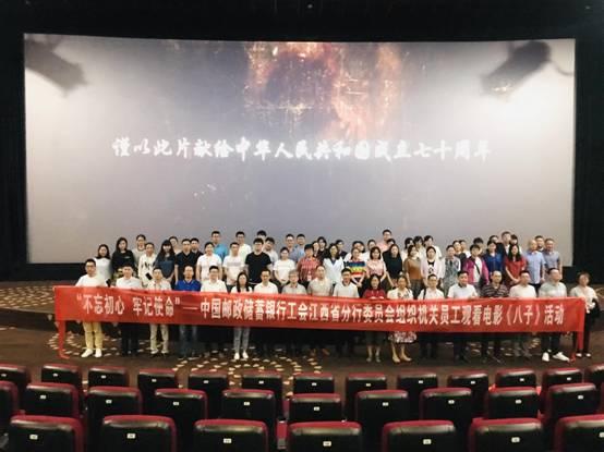 省郵儲分行機關部分員工觀影后表示:在建黨98周年之際,工會組織廣大員工觀看這部具有重大意義的電影,為大家上了一堂生動的“電影黨課”,引導黨員、群眾向革命先烈學習,激勵干部群眾為實現中華民族偉大復興的中國夢而奮斗。我們郵儲人仍然肩負著歷史使命,銘記“不忘初心、方得始終”,踏著先輩的足跡,砥礪前行。 (江西省郵政工會)