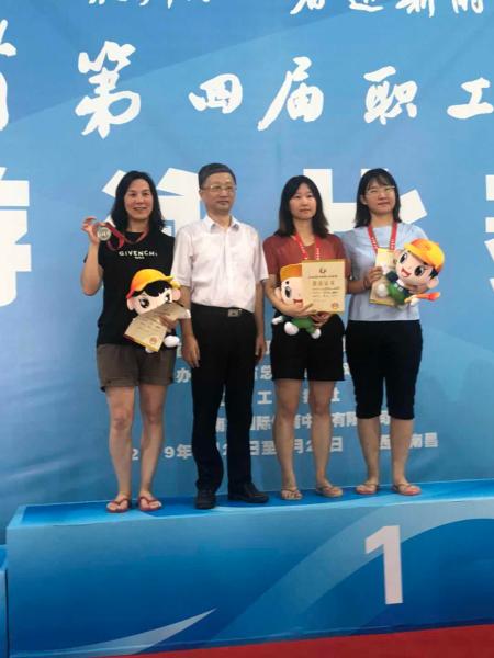 經過三天的激烈角逐,在接力項目中,江西郵政游泳隊聶岱莉、盧鶯、朱筱萍、姚曉麗榮獲了女子省產業組4×50米自由泳、女子省產業組4×100米自由泳和女子省產業組4×50米混合泳3塊銀牌,肖琛、盧鶯、潘湧、聶岱莉、朱筱萍、李志榮獲了男女省產業組6×50米自由泳第四名;在個人項目中,盧鶯榮獲了女子省產業組100米自由泳銀牌和女子省產業組100米蛙泳銅牌;聶岱莉榮獲了女子省產業組50米自由泳銅牌和女子省產業組50米蛙泳第六名;李志榮獲了男子省產業組50米自由泳第四名和男子產業組50米蛙泳第八名;肖琛榮獲江西省第四屆職工運動會體育道德風尚運動員。